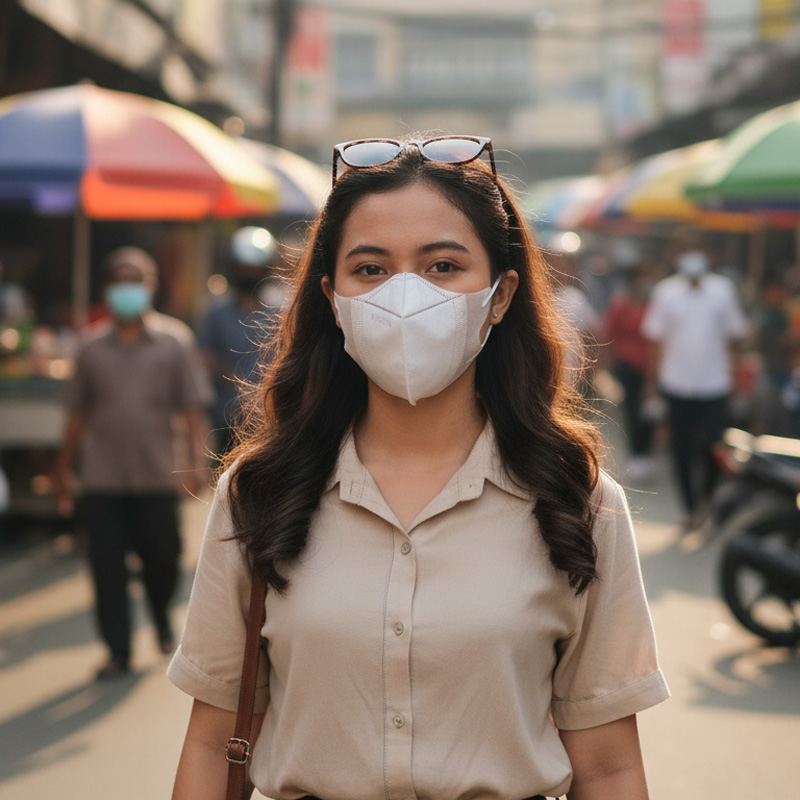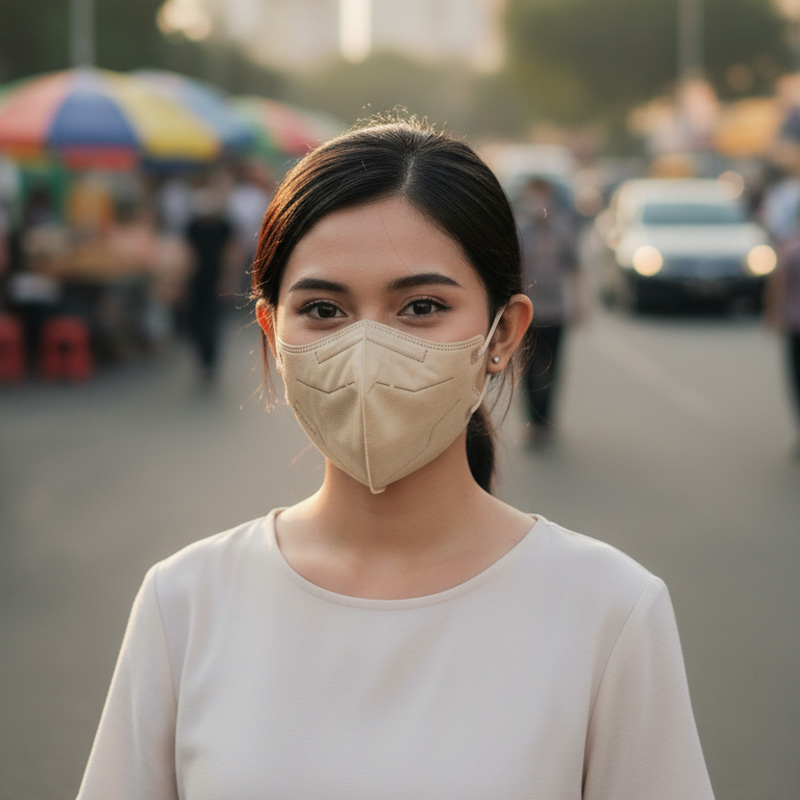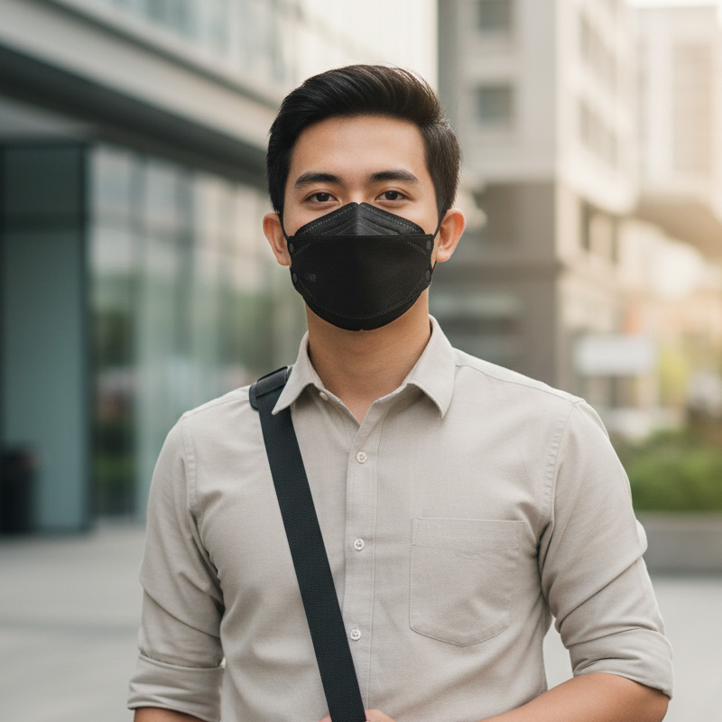 Proteksi Maksimal: Filter multi-lapis (KN95/KF94) teruji blokir partikel >95%.